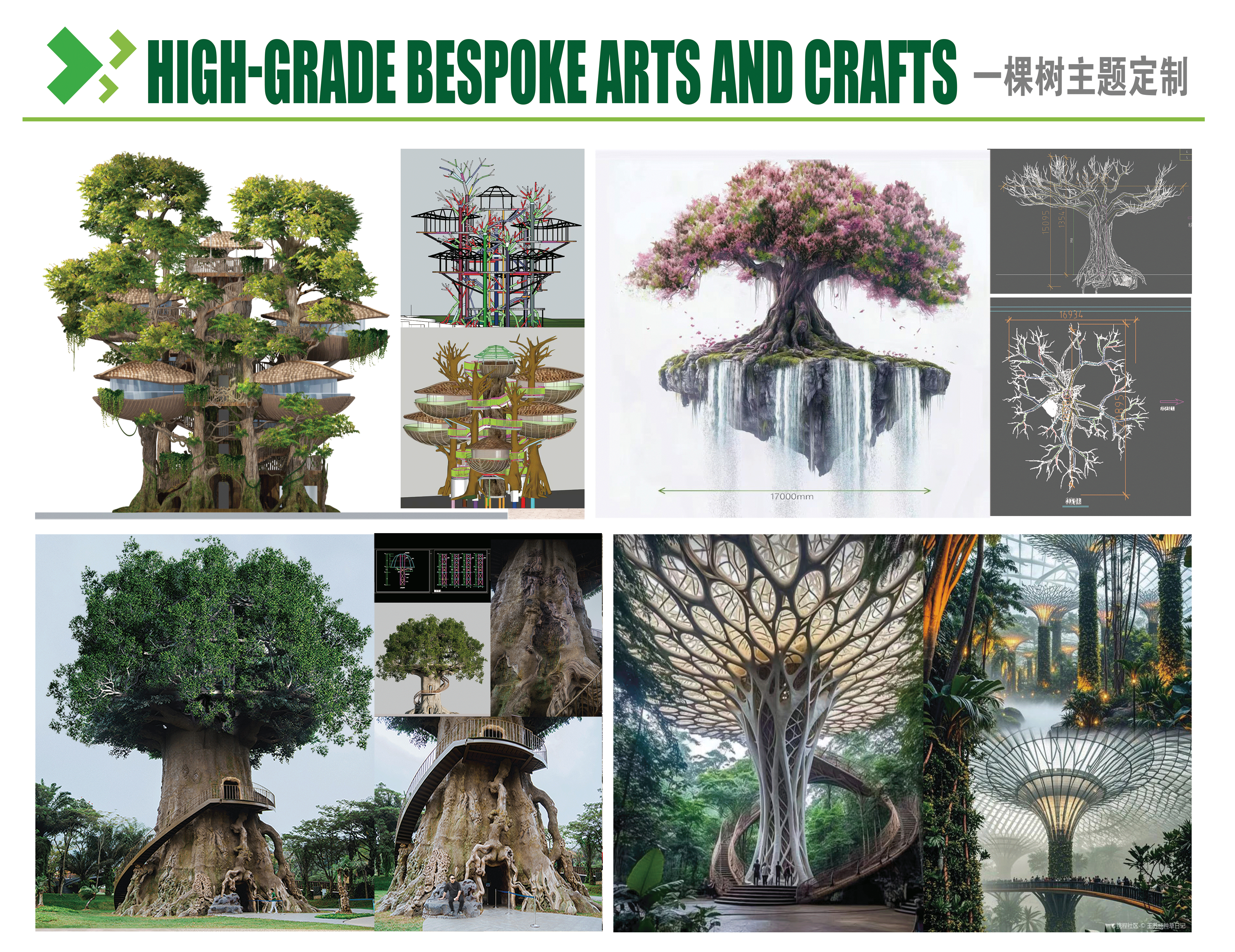 拥有12000+仿真植物产品,覆盖高仿真植物、发光奇异动植物、仿真景观树、仿真绿雕等,并支持一棵树主题定制,满足主题乐园、商场中庭、酒店大堂、机场景观等不同场景。